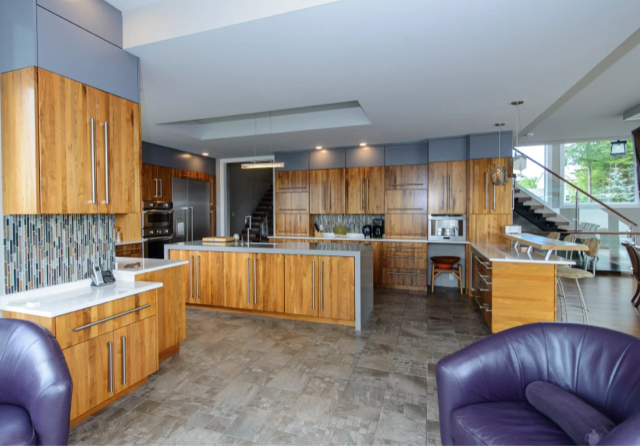 Made top to bottom with solid walnut, this kitchen stands out from your standard walnut kitchen, using primarily hart wood, our team was able to create this one of a kind bright walnut kitchen, with vertical grain throughout. The open concept and natural light means these cabinets will catch your eye from all angles at any time of day. To see more kitchens like this, click below to be taken to our full gallery.